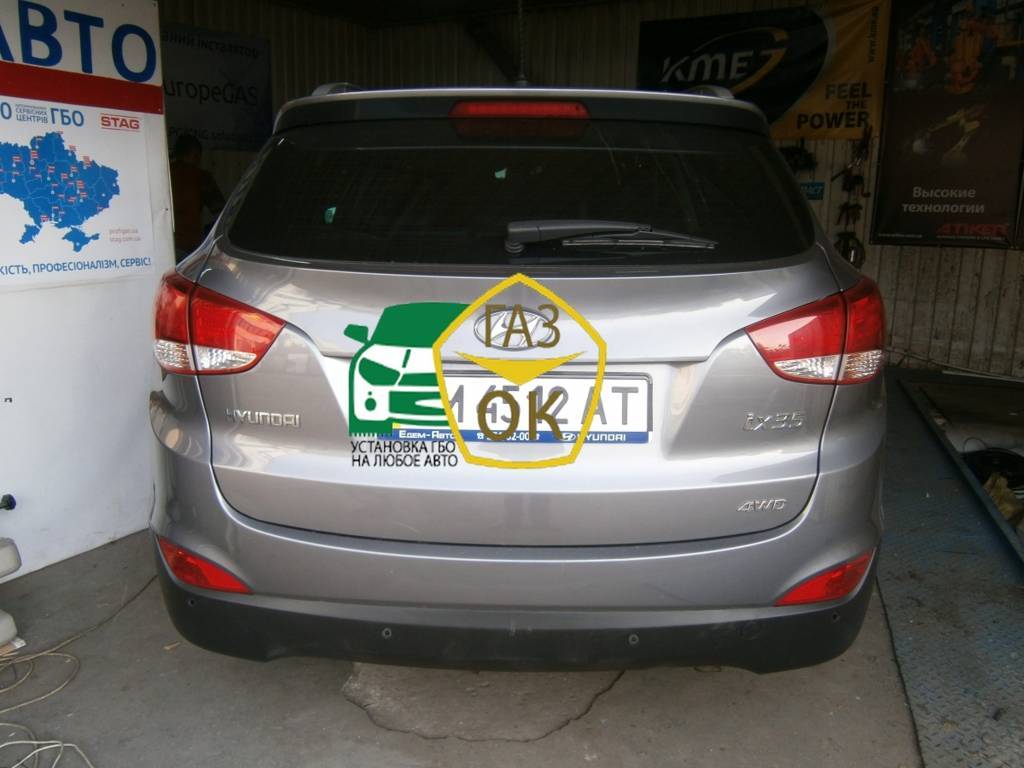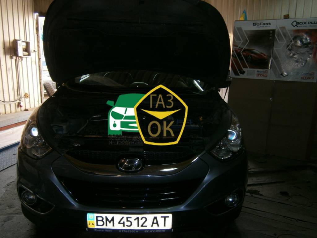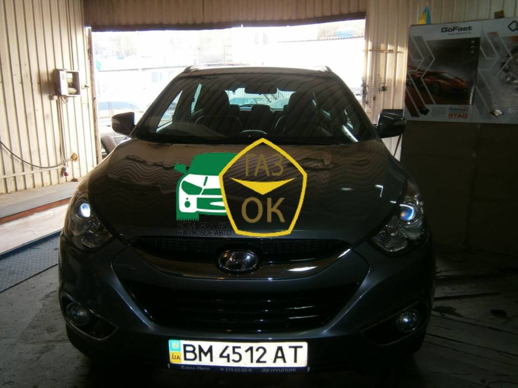 Установка газового оборудования на Хюндай i IX35 Киев. Установленна электроника Stag GoFast, редуктор KME Silver, форсунки Hana, баллон тор. на 54л Gaz Ok Газ ОК ГБО на авто Киев. Ждем Вас ежедневно по адресу: г. Киев ул. Кировоградская 38/58 (ул. Владимира Брожко 38/58).